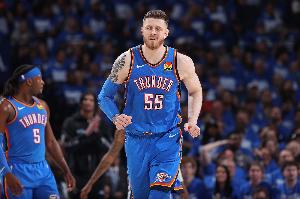 本场比赛,雷霆中锋哈滕发挥不错,进攻端出手不多但效率很高,罚球手感也在线,篮板拼抢很亮眼。