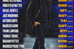 以下为2007年以来,切尔西历任主帅任职时间: