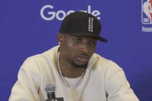 记者:在第三节有一个回合,丹尼尔斯在半场完成了一次抢断,你快攻反击,丹尼尔斯给你传了一个长传,让你在篮下轻松得分。你能谈谈丹尼尔斯的组织能力和防守吗?这不仅对你的比赛,甚至对整支球队来说有多大的影响?