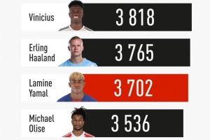 体育资讯4月24日讯 巴萨边锋亚马尔在对阵塞尔塔的比赛中受伤,预计赛季报销,据《队报》统计,18岁亚马尔是本赛季五大联赛出场时间第三多的前锋。