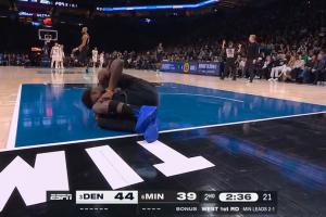 体育资讯4月26日讯 森林狼与掘金的G4第二节,爱德华兹在一次防守过程中受伤离场;