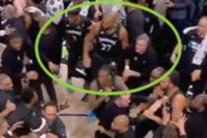 在冲突中,掘金替补席有戈登与瓦兰进场,而森林狼替补席则有戈贝尔、英格尔斯和海兰德进场。