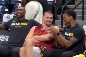 GIF——约基奇场边笑容满面